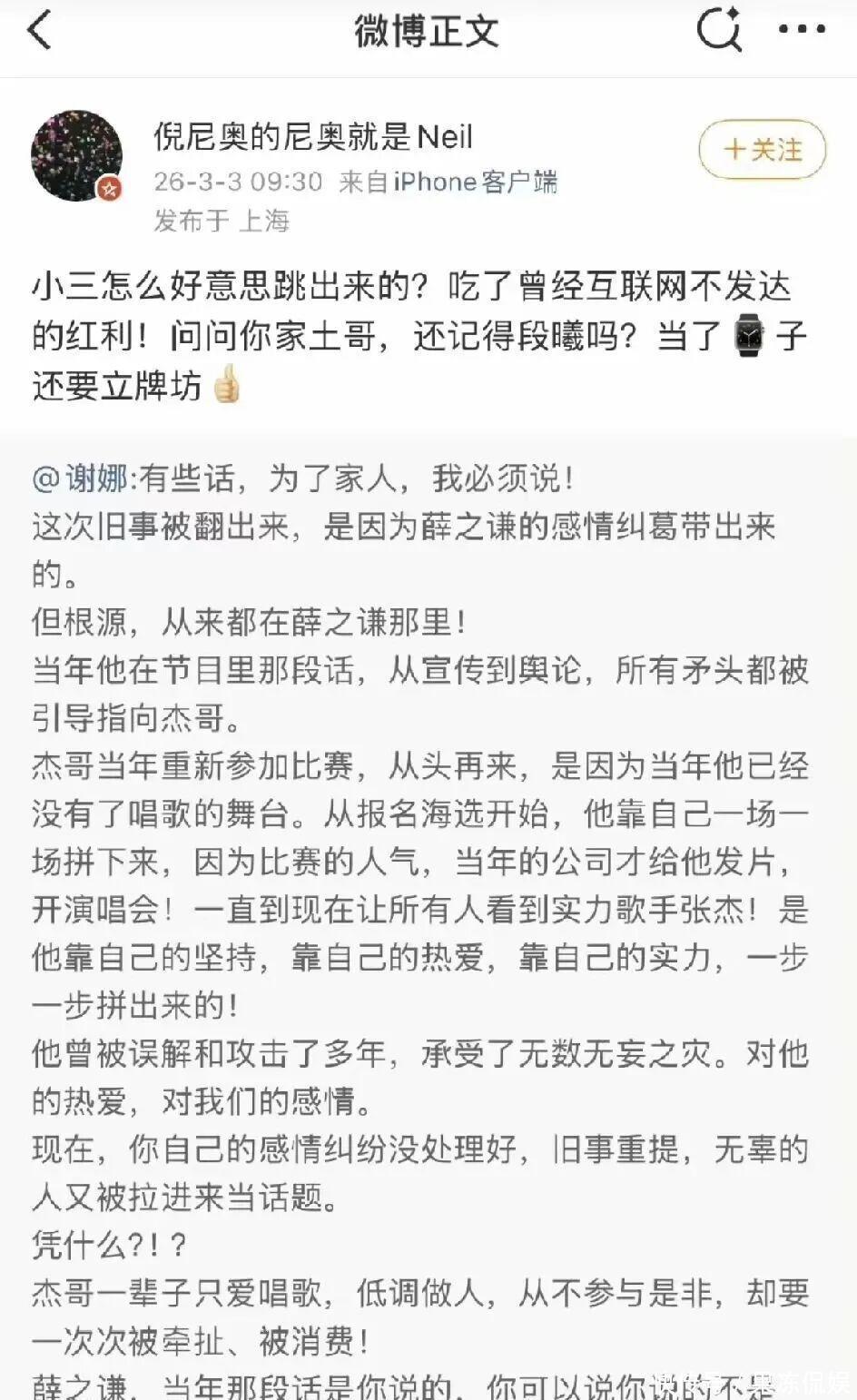 这次李雨桐锤薛之谦,也只是爆了一句张杰土,都没提到靠女友上位这件事。结果谢娜自己跳出来,噼里啪啦一顿输出,网友才又去扒拉当年薛之谦说了啥。