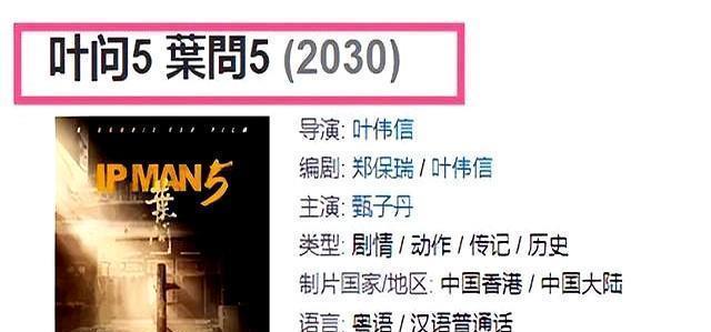 只不过近几年,华语动作片市场确实冷了不少,《叶问5》卡在那儿不动弹,网上现在都在传2023年戛纳电影节后官宣的《叶问5》到现在还是只闻其名,豆瓣上映时间已经躺平标到2030年,投资谈不拢,剧本方向摇摆,市场又不景气,谁都说不清到底能不能拍。